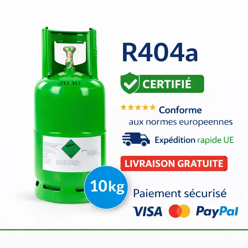 Fluide frigorigène R-404A (régénéré – norme AHRI-700), 10 kg net.